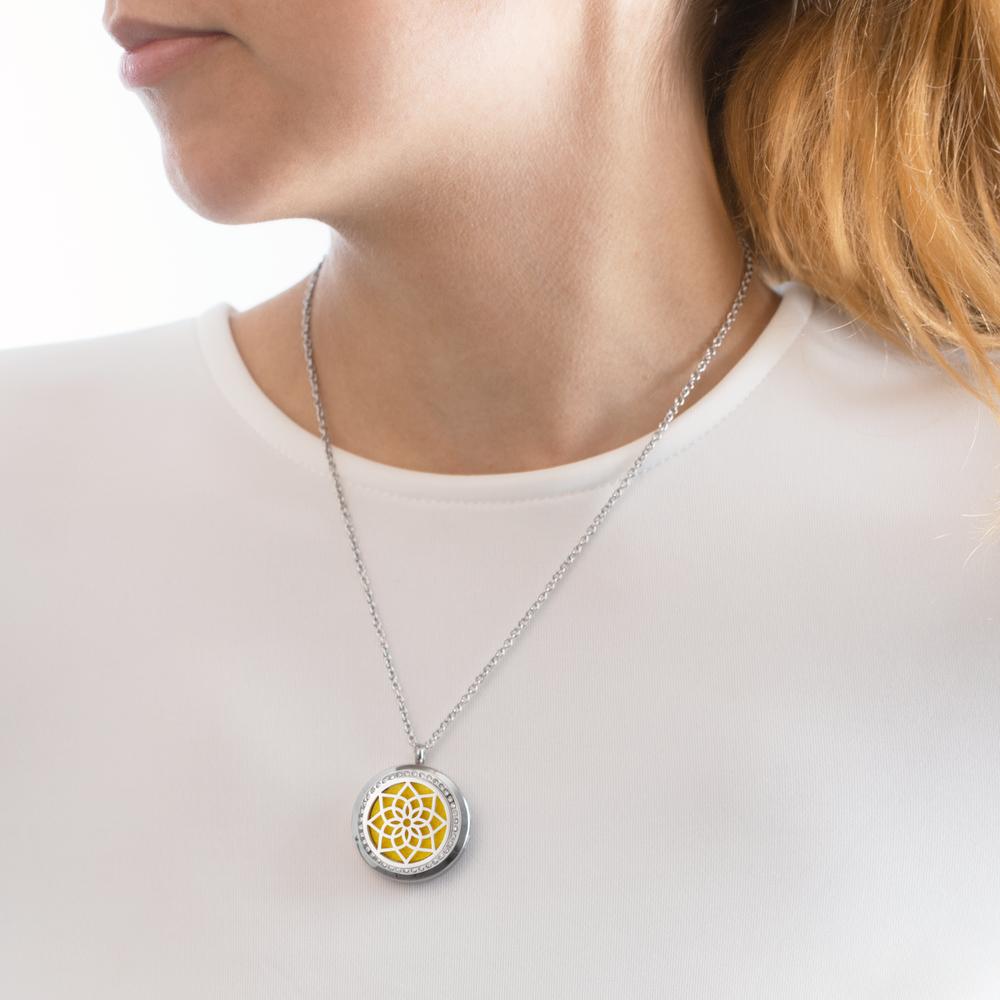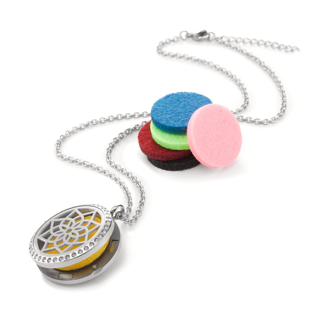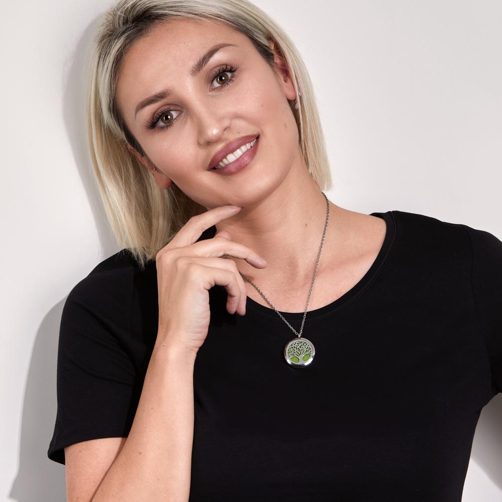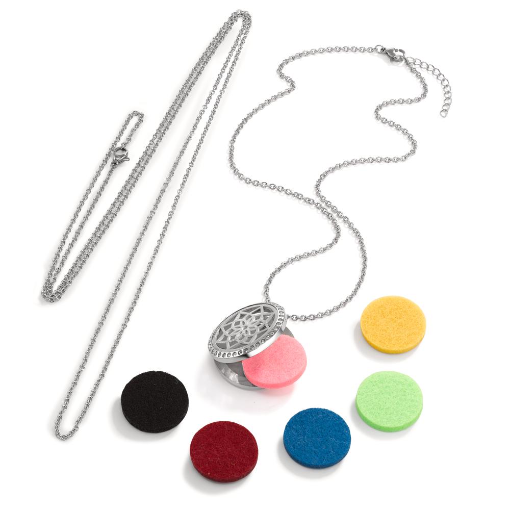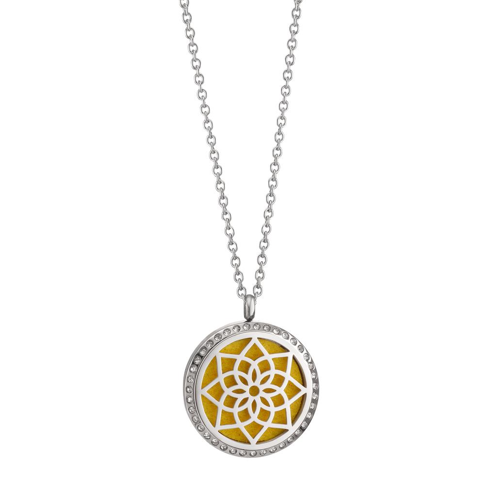 Halsketten-Set: Duft-Medaillon-Anhänger Lebensblume mit Zirkonia inkl. 2 Ketten zum kombinieren