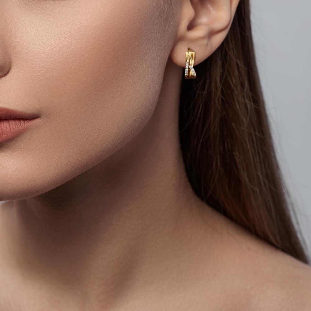 Elegante Damen Klappcreolen aus 375er Gelbgold mit funkelnden Zirkonia-Steinen. Das filigrane Design verleiht jedem Outfit einen stilvollen Akzent. Leicht zu tragen und perfekt für jeden Anlass – zeitloser Schmuck, der begeistert.