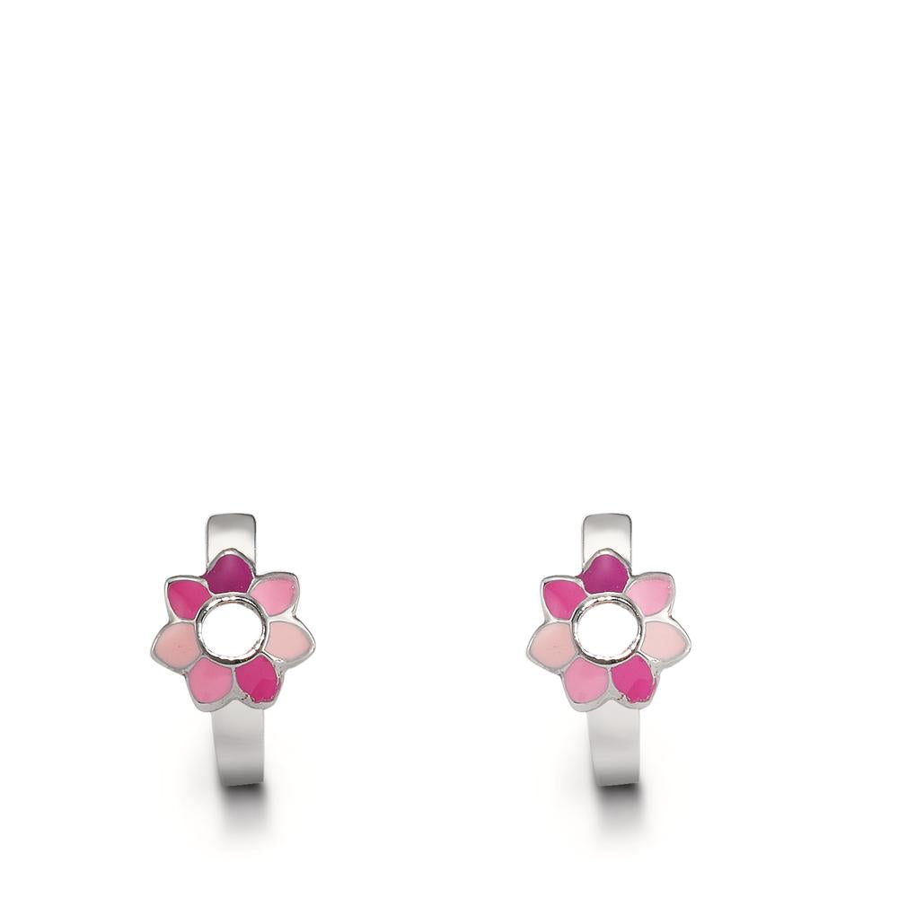 Zauberhafte Klappcreolen aus echtem Silber, liebevoll verziert mit bunten Blumen in verschiedenen Pinktönen. Perfekt für Mädchen, die einen süssen und verspielten Look lieben. Leicht zu tragen und ideal als Geschenk oder für den Alltag.