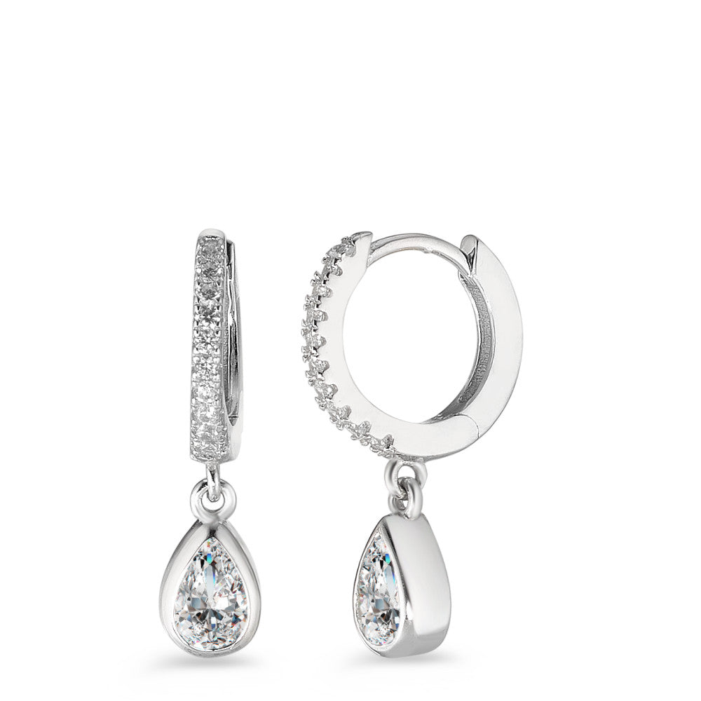 Elegante Damen Klappcreolen aus hochwertigem Silber, verziert mit funkelnden Zirkonia-Steinen. Die zarten Tropfenanhänger setzen glamouröse Akzente und machen diese Ohrringe zum perfekten Accessoire für jeden Anlass. Komfortabel und stilvoll zugleich!