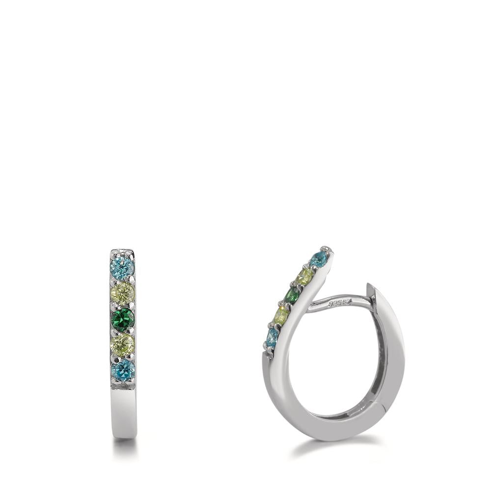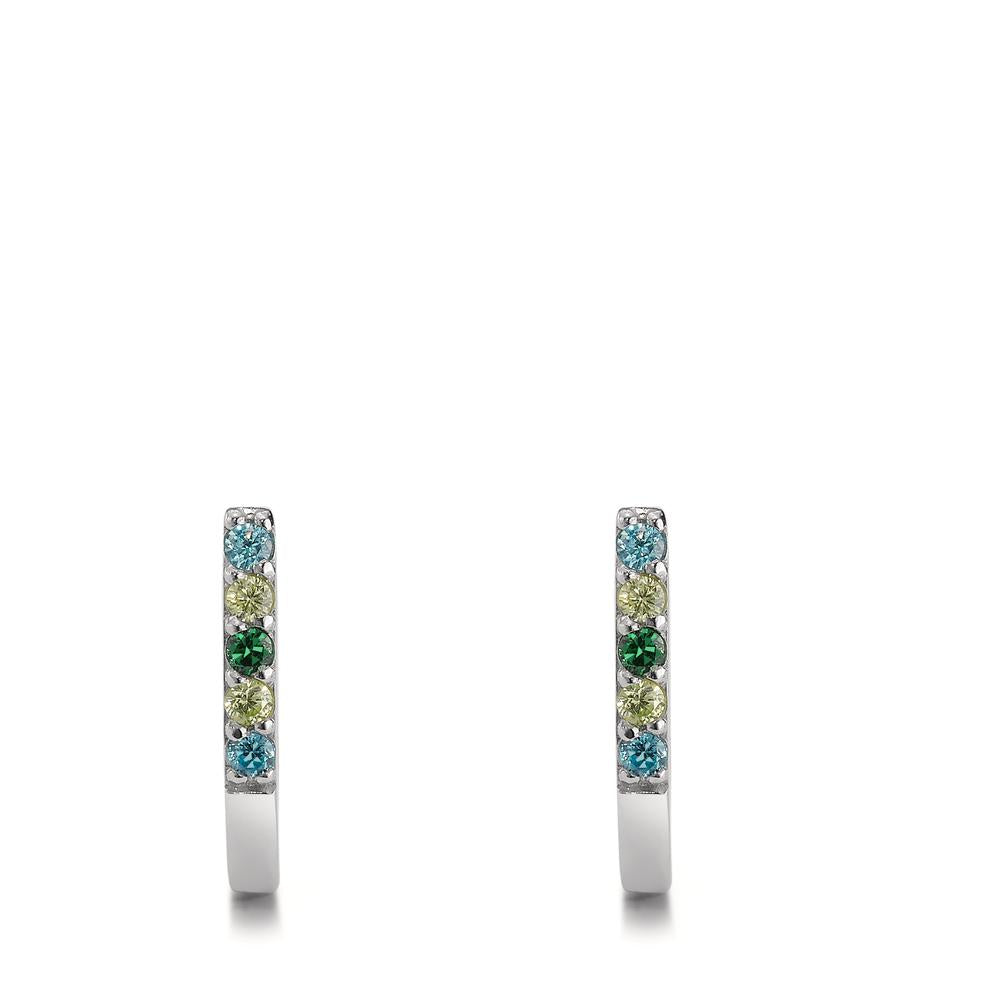 Klappcreolen Silber Zirkonia bunt, 10 Steine rhodiniert
