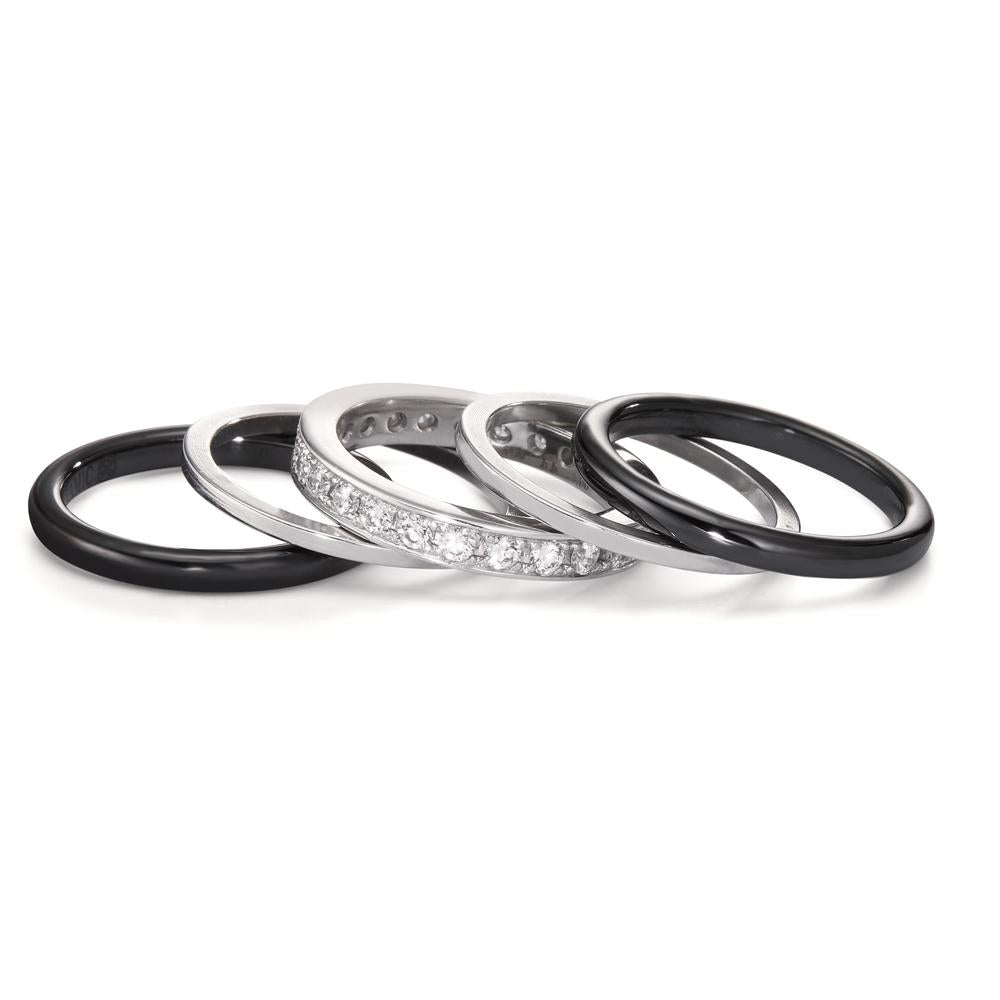Eleganter Damen Memory Ring aus hochwertigem Weissgold, besetzt mit funkelnden Diamanten in Pavé-Fassung. Dieser zeitlose Ring symbolisiert Liebe und Verbundenheit und eignet sich perfekt als Geschenk oder für besondere Anlässe. Strahlender Glanz trifft auf edles Design.