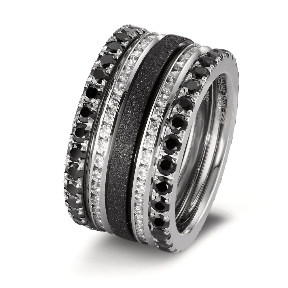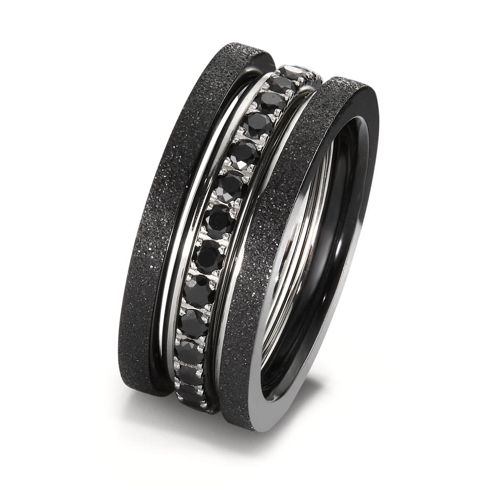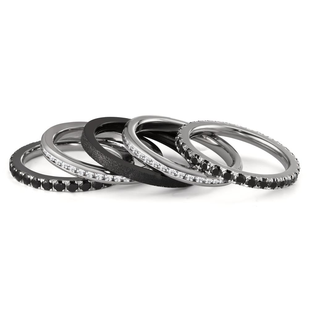 Eleganter Damen Memory Ring aus hochwertigem Edelstahl, besetzt mit funkelnden schwarzen Zirkonia-Steinen. Der schmale Ring besticht durch sein zeitloses Design und eignet sich perfekt als stilvolles Accessoire für jeden Anlass. Robust, langlebig und hautfreundlich.