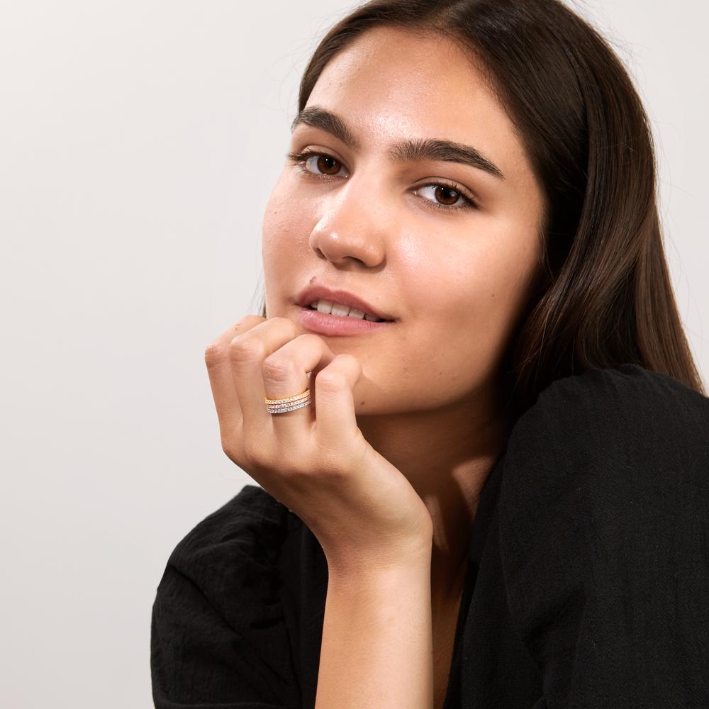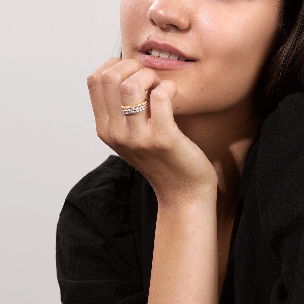 Eleganter Damen Memory Ring aus hochwertigem Silber mit funkelnden Zirkonia-Steinen, die den kompletten Ring zieren. Der zeitlose Schmuckstück-Design sorgt für besondere Akzente und ist perfekt für jeden Anlass. Ein edles Accessoire für Ihren besonderen Look.