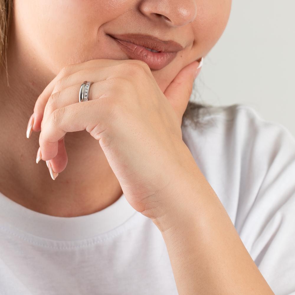 Eleganter Damen Memory Ring aus hochwertigem Silber, veredelt mit funkelnden Zirkonia-Steinen, die den Ring rundum zum Strahlen bringen. Ein zeitloses Schmuckstück, das jede Hand stilvoll schmückt und sich perfekt für jeden Anlass eignet.