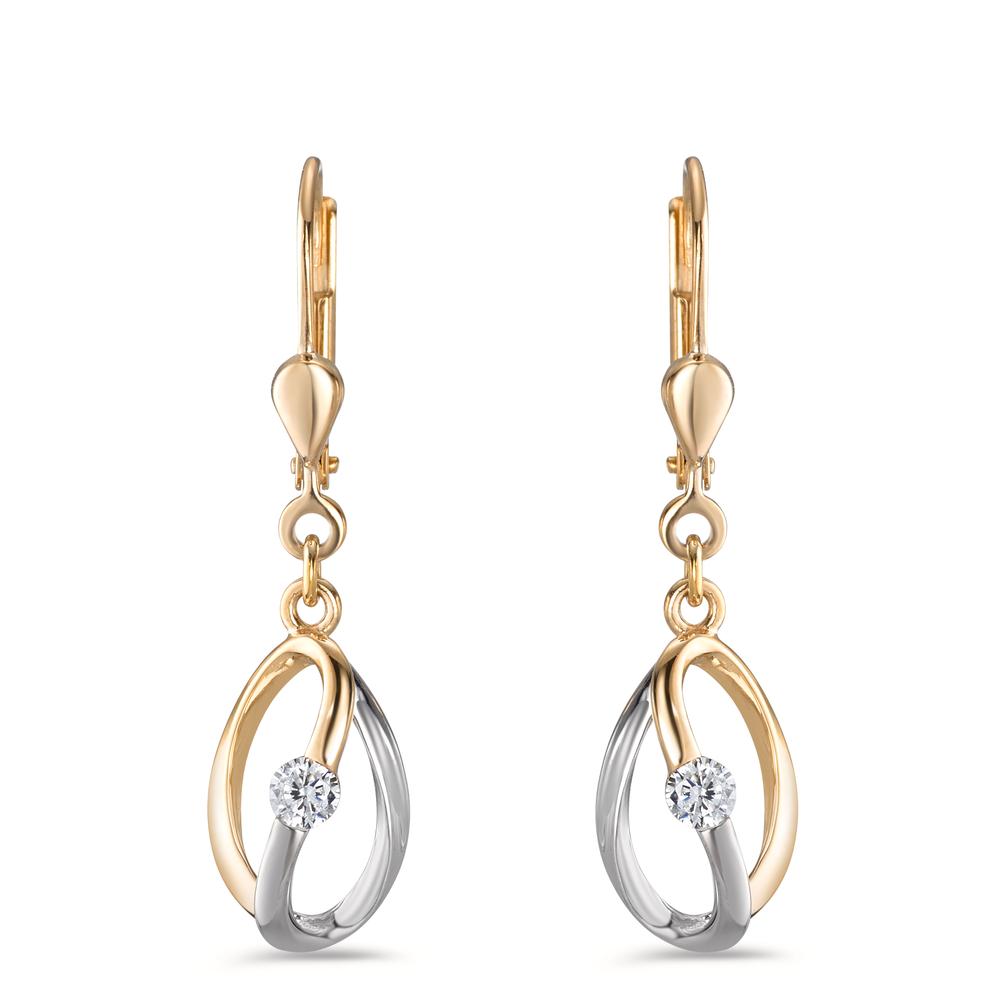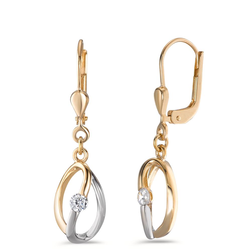 Ohrhänger 375/9 K Gelbgold Zirkonia 2 Steine bicolor