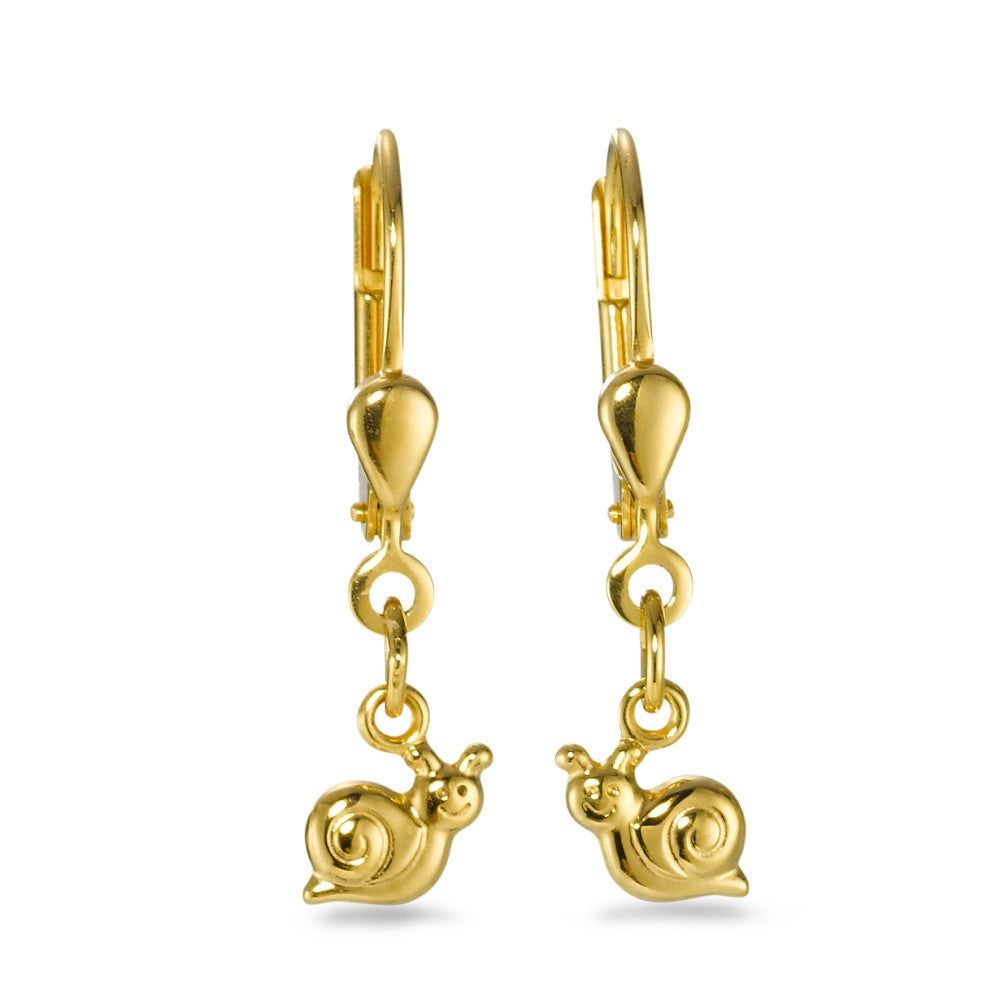 Süsse Ohrhänger für Mädchen aus 750er Gelbgold mit fröhlichen Schnecken-Anhängern. Die filigranen Ohrringe sind leicht und hautfreundlich, perfekt für den täglichen Gebrauch. Ein liebevolles Geschenk für kleine Entdeckerinnen mit einem charmanten Design.