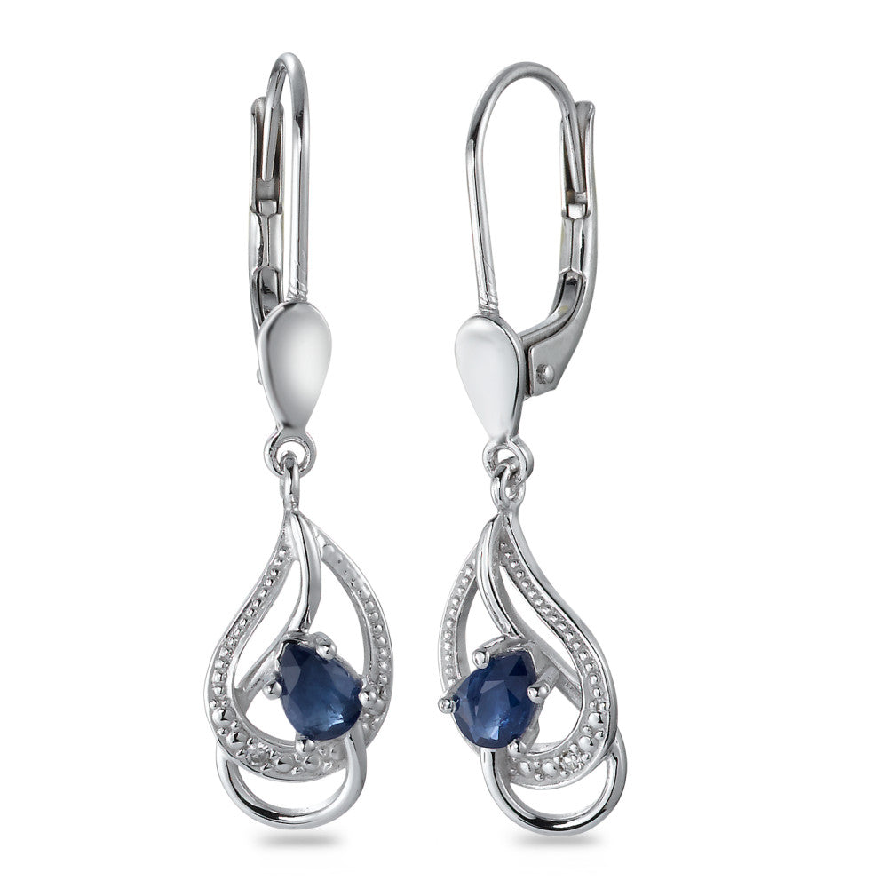 Elegante Damen Ohrhänger aus hochwertigem 750er Weissgold. Feine Tropfenform mit exquisiter Struktur, verziert mit funkelnden Diamanten und tiefblauen Saphiren. Zeitloses Design, das jedem Look eine edle Note verleiht. Perfekt für besondere Anlässe und den Alltag.