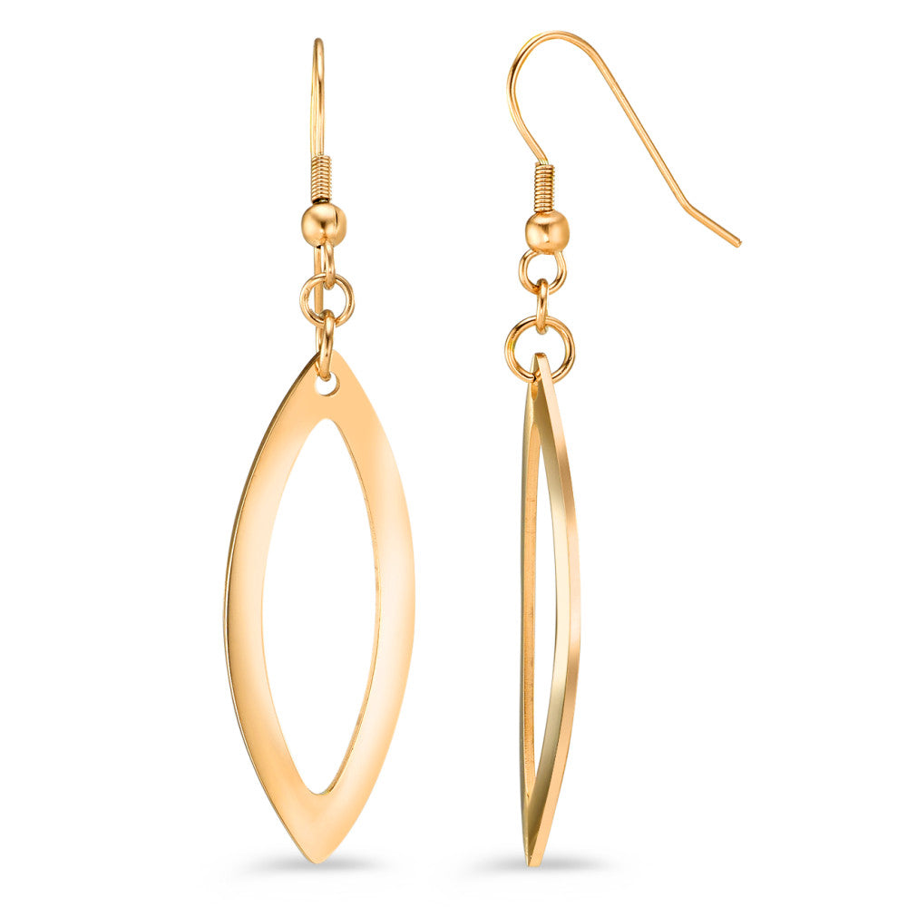 Elegante Damen Ohrhänger aus hochwertigem Edelstahl mit goldfarbener Beschichtung. Das zeitlose, luftig-leichte Design in Form eines geschwungenen Blattes verleiht jedem Outfit eine stilvolle Note. Leicht, langlebig und perfekt für den Alltag oder besondere Anlässe.