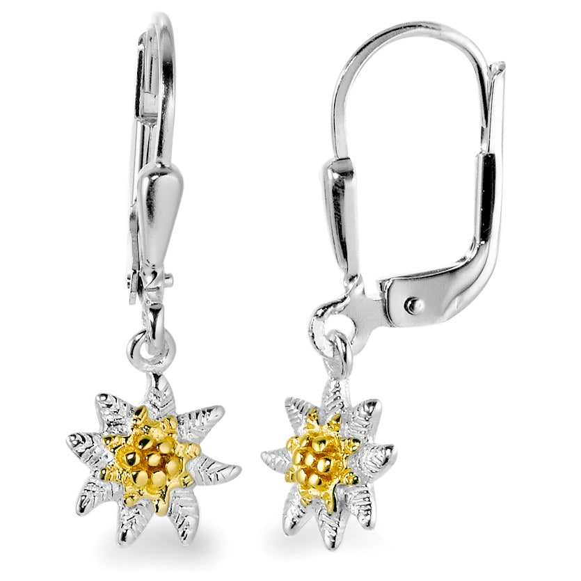 Diese eleganten Damen-Ohrhänger aus hochwertigem Silber bestechen durch ihr filigranes Design mit einem strahlenden, goldfarbenen Blumenakzent. Leicht und angenehm zu tragen, verleihen sie jedem Outfit eine feminine und edle Note – perfekt für jeden Anlass.