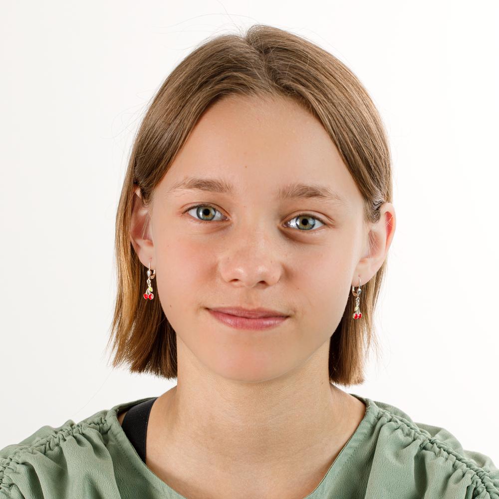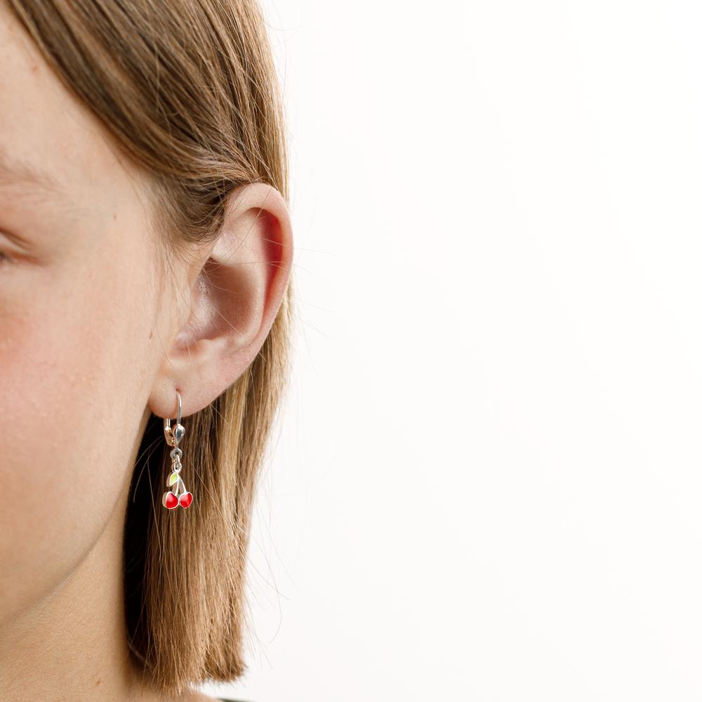 Süsse Ohrhänger für Mädchen aus hochwertigem Silber mit liebevollem Kirsch-Design. Die glänzenden roten Herzen und grünen Blätter verleihen jedem Look einen fröhlichen und verspielten Touch. Perfekt für den Alltag oder festliche Anlässe – leicht und angenehm zu tragen.