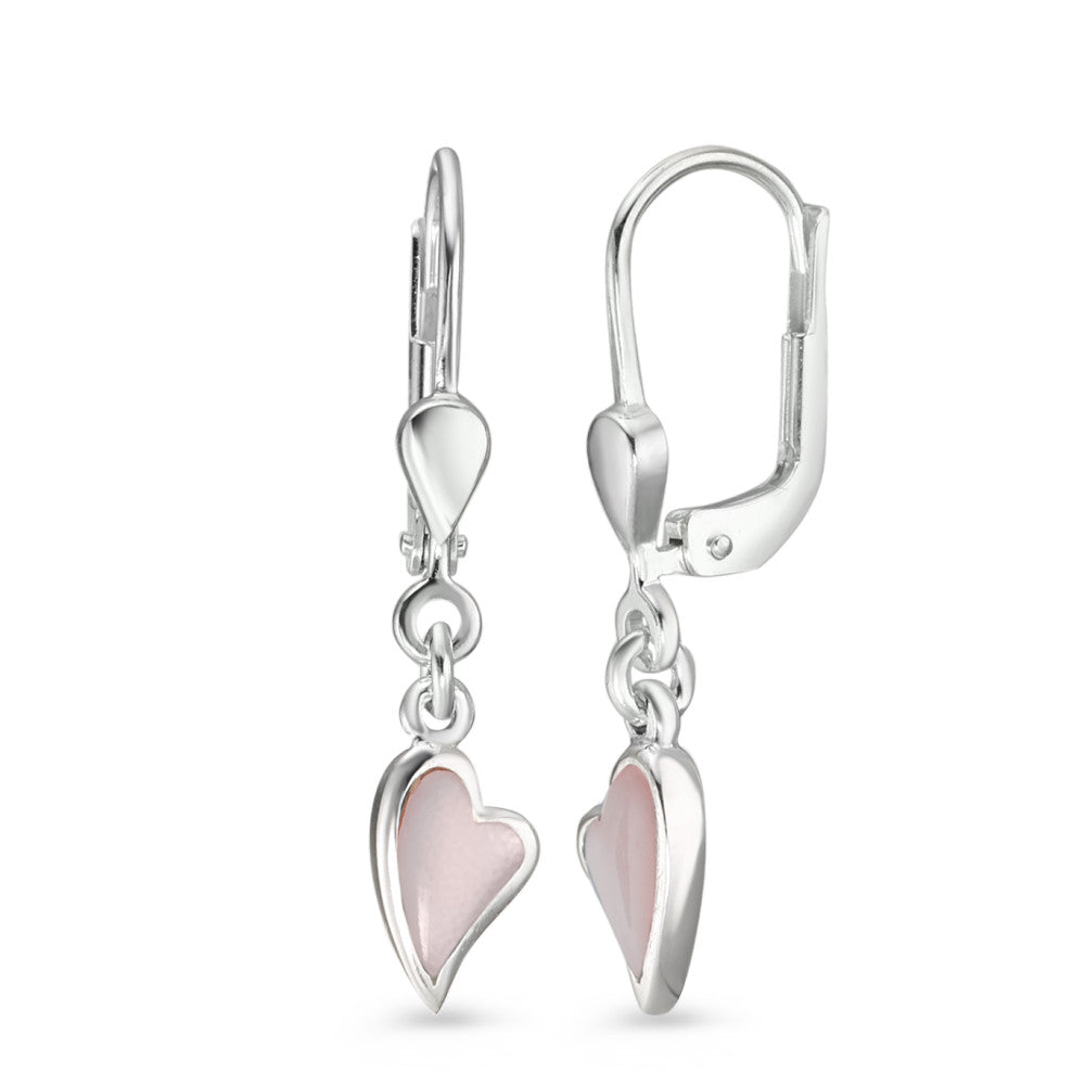 Ohrhänger Silber Perlmutt rosa, 2 Perlen Herz Ø5 mm