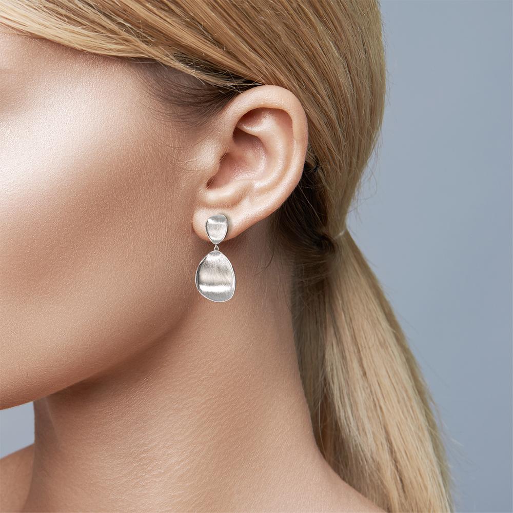 Zeitlose Damen Ohrhänger aus hochwertigem Silber mit mattem Finish. Das organisch geformte Design verleiht jedem Outfit eine elegante Note. Leicht und angenehm zu tragen, sind diese Ohrhänger das perfekte Accessoire für den Alltag und besondere Anlässe.