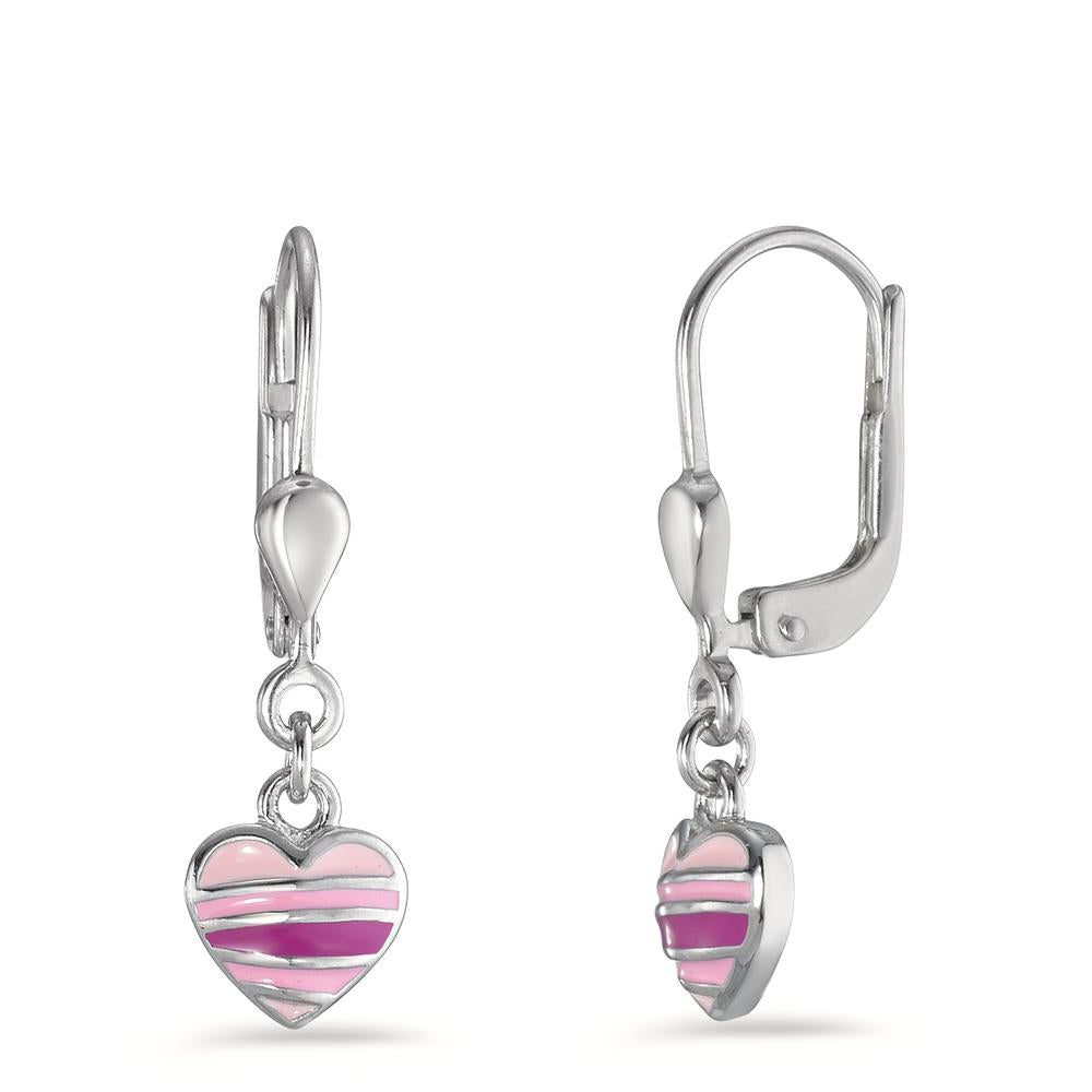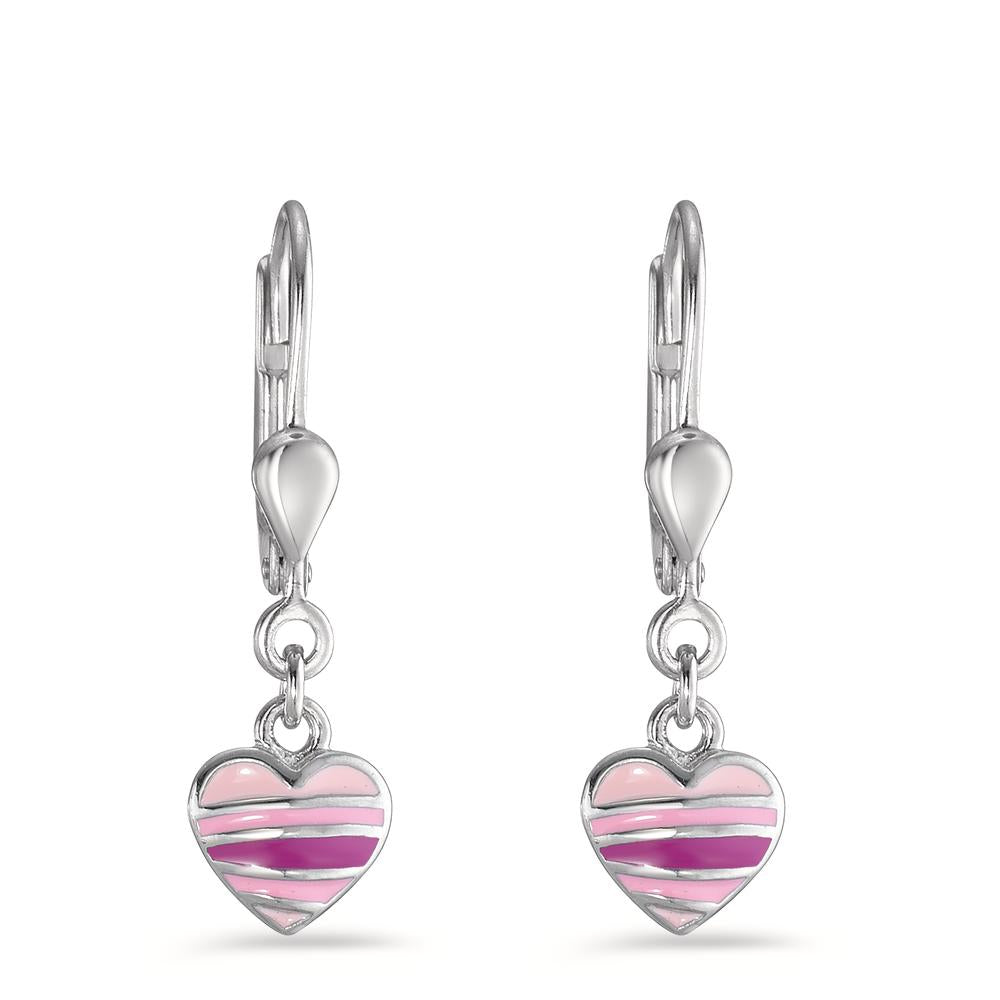 Zarte Mädchen Ohrhänger aus hochwertigem Silber, verziert mit einem liebevoll gestalteten Herz-Anhänger in verschiedenen Rosa- und Pinktönen. Ein bezaubernder Schmuckartikel, der jedem Outfit einen spielerischen und kindgerechten Akzent verleiht – ideal als Geschenk oder für den eigenen Look.