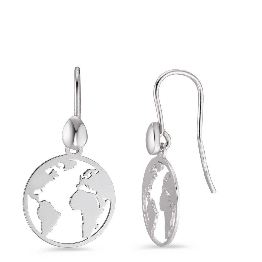 Ohrhänger Silber rhodiniert Weltkugel Ø15 mm