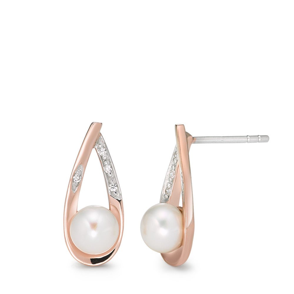 Ohrhänger Silber Zirkonia 8 Steine rosé vergoldet Süsswasserzuchtperle weiss, 2 Perlen, 5.5 mm