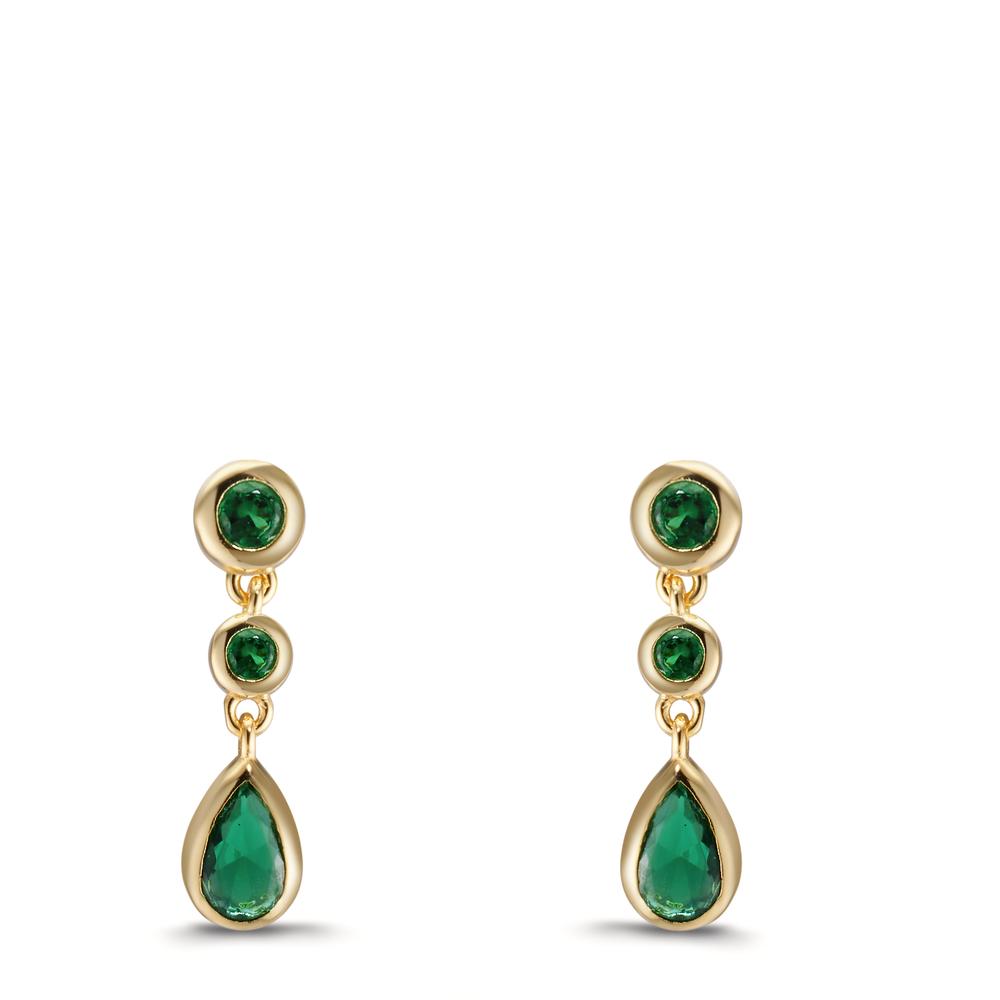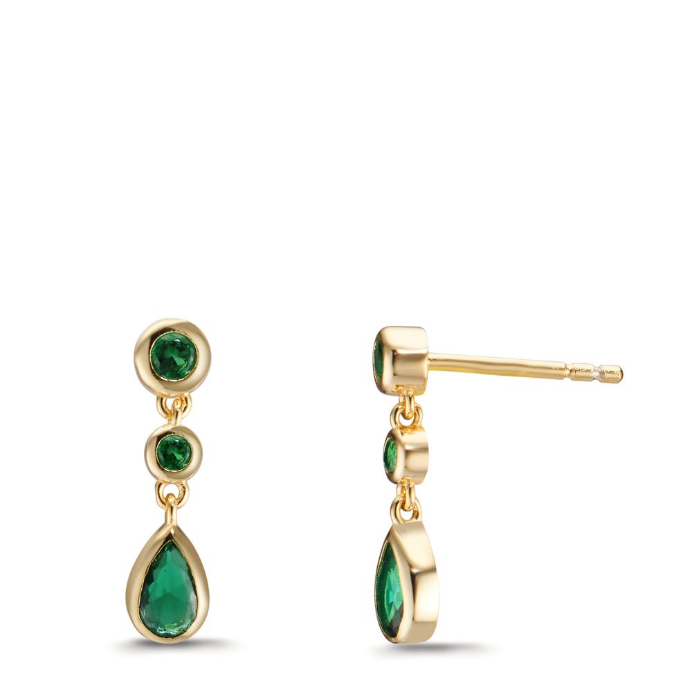 Ohrhänger Silber Zirkonia grün, 6 Steine gelb vergoldet