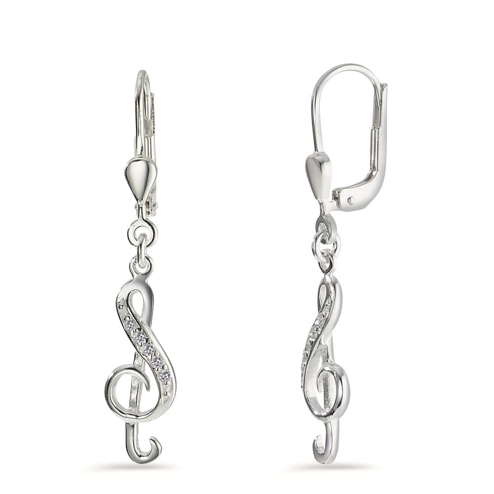 Ohrhänger Silber Zirkonia Notenschlüssel 35 mm