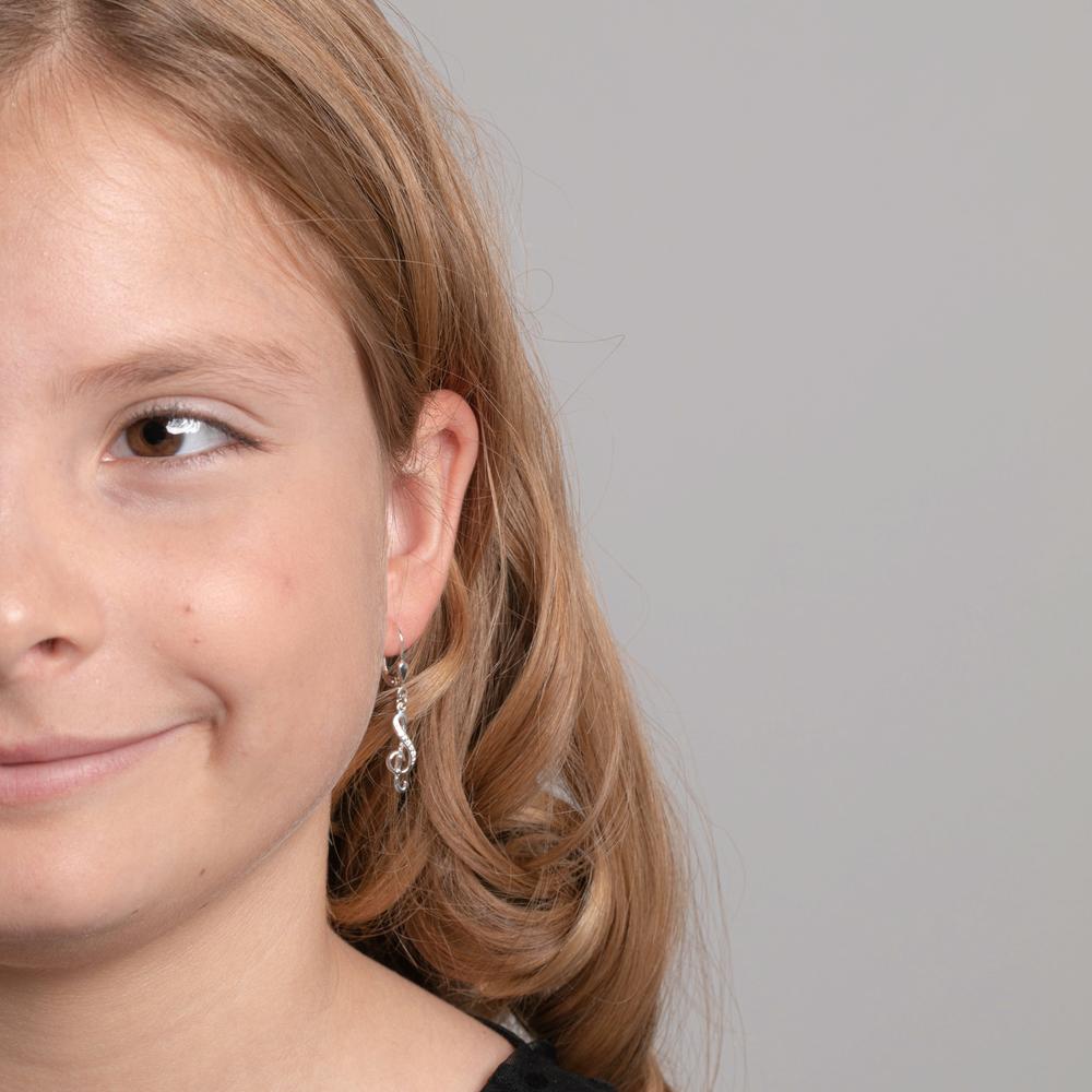 Diese eleganten Ohrhänger aus hochwertigem Silber begeistern mit einem stilvollen Notenschlüssel-Design, verziert mit funkelnden Zirkonia-Steinen. Perfekt für musikbegeisterte Mädchen, die mit diesem Schmuckstück ihren individuellen Stil unterstreichen möchten.