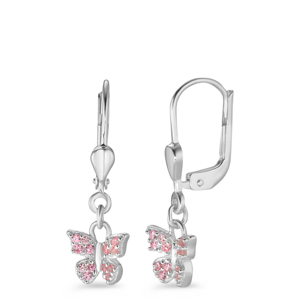 Ohrhänger Silber Zirkonia rosa, 28 Steine Schmetterling