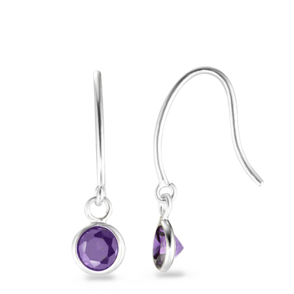 Elegante Damen-Ohrhänger aus hochwertigem Silber, besetzt mit funkelnden Zirkonia-Steinen in tiefem Violett. Leicht und stilvoll sorgen sie für einen dezenten, aber edlen Look – perfekt für den Alltag oder besondere Anlässe. Ein wunderschönes Accessoire für jede Frau.
