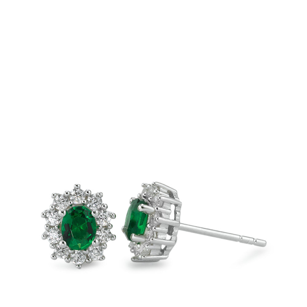 Elegante Damen-Ohrstecker aus feinem Silber, besetzt mit strahlenden synthetischen Smaragden und funkelnden Zirkonia-Steinen. Ein zeitloses Schmuckstück, das jedem Outfit einen Hauch von edlem Grün und glamourösem Glanz verleiht. Ideal für besondere Anlässe oder den Alltag.