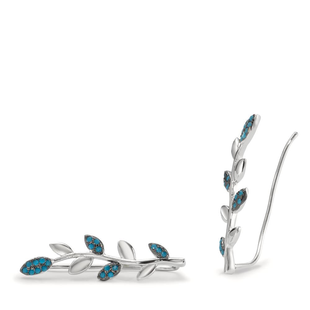 Ohrschieber Silber Zirkonia blau rhodiniert Blatt
