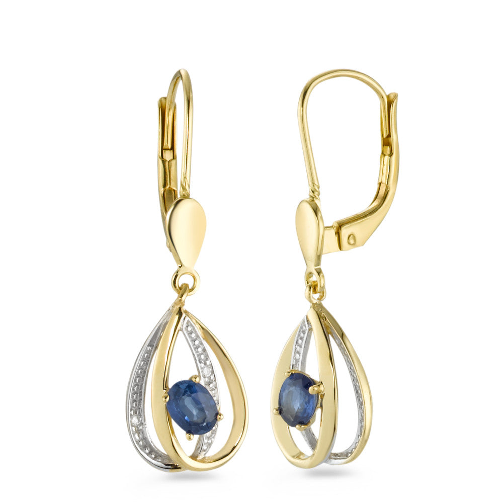 Elegante Damen Ohrhänger aus 750er Gelbgold mit feinen Saphiren und funkelnden Diamanten. Das anmutige Tropfen-Design vereint zeitlose Schönheit mit edlem Glanz und macht diese Ohrhänger zum perfekten Accessoire für besondere Anlässe oder den Alltag. Ein Schmuckstück voller Stil und Eleganz.