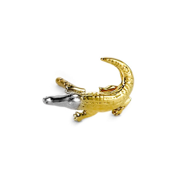 Dieser exklusive Herren-Ohrstecker aus 750er Gelbgold besticht durch seine einzigartige Krokodil-Form. Das detailreiche Design kombiniert edles Gelb- und Weissgold und verleiht Ihrem Look einen markanten, stilvollen Akzent. Perfekt für selbstbewusste Männer mit Geschmack.
