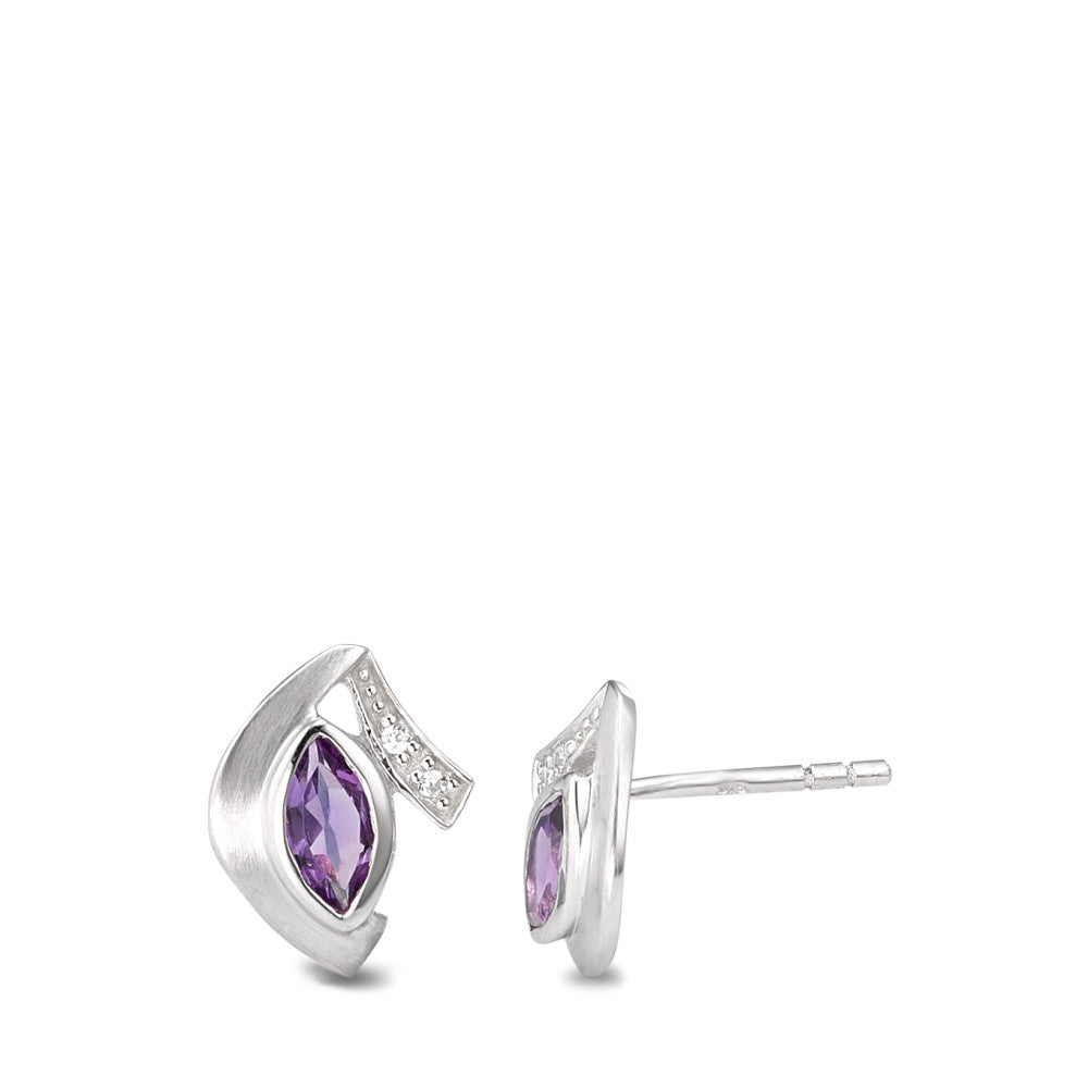Elegante Damen Ohrstecker aus 375 Weissgold mit funkelndem Amethyst in Marquise-Schliff. Dezente Zirkonia-Akzente verleihen den Schmuckstücken zusätzlichen Glanz. Perfekt für jeden Anlass – zeitlos schön und edel. Ein Must-Have für stilbewusste Damen.