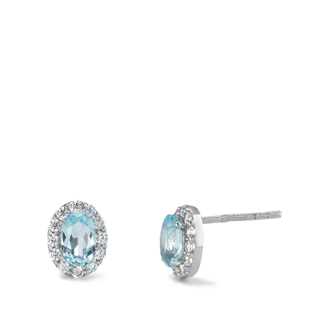 Elegante Damenohrstecker aus 375er Weissgold mit strahlendem, ovalem Topas. Die funkelnden Zirkonia umrahmen den edlen Stein und verleihen diesem Schmuckstück zeitlose Schönheit. Perfekt für besondere Anlässe oder den Alltag – dezent und hochwertig zugleich.