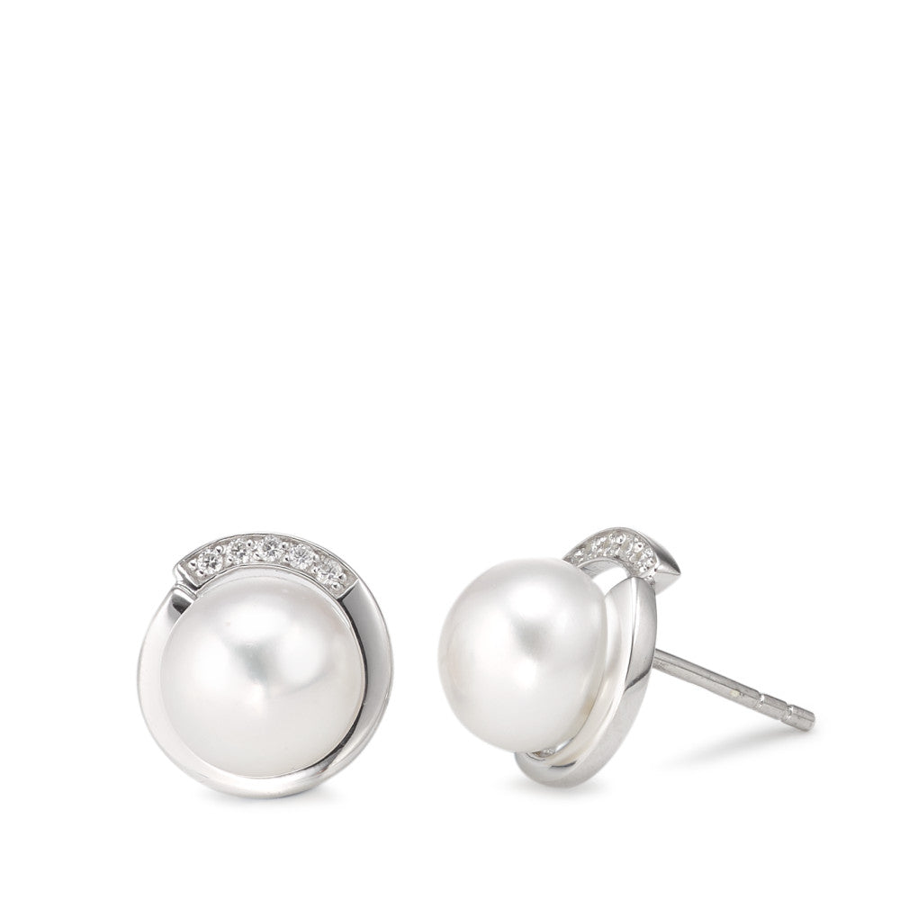 Ohrstecker 375/9 K Weissgold Zirkonia 10 Steine Süsswasserzuchtperle weiss, 2 Perlen, 8 mm Ø11 mm