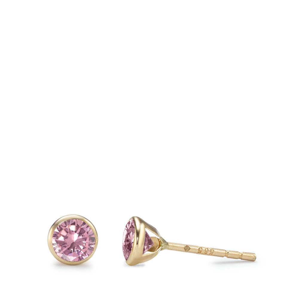 Ohrstecker 585/14 K Gelbgold Zirkonia rosa, 2 Steine Ø4.3 mm
