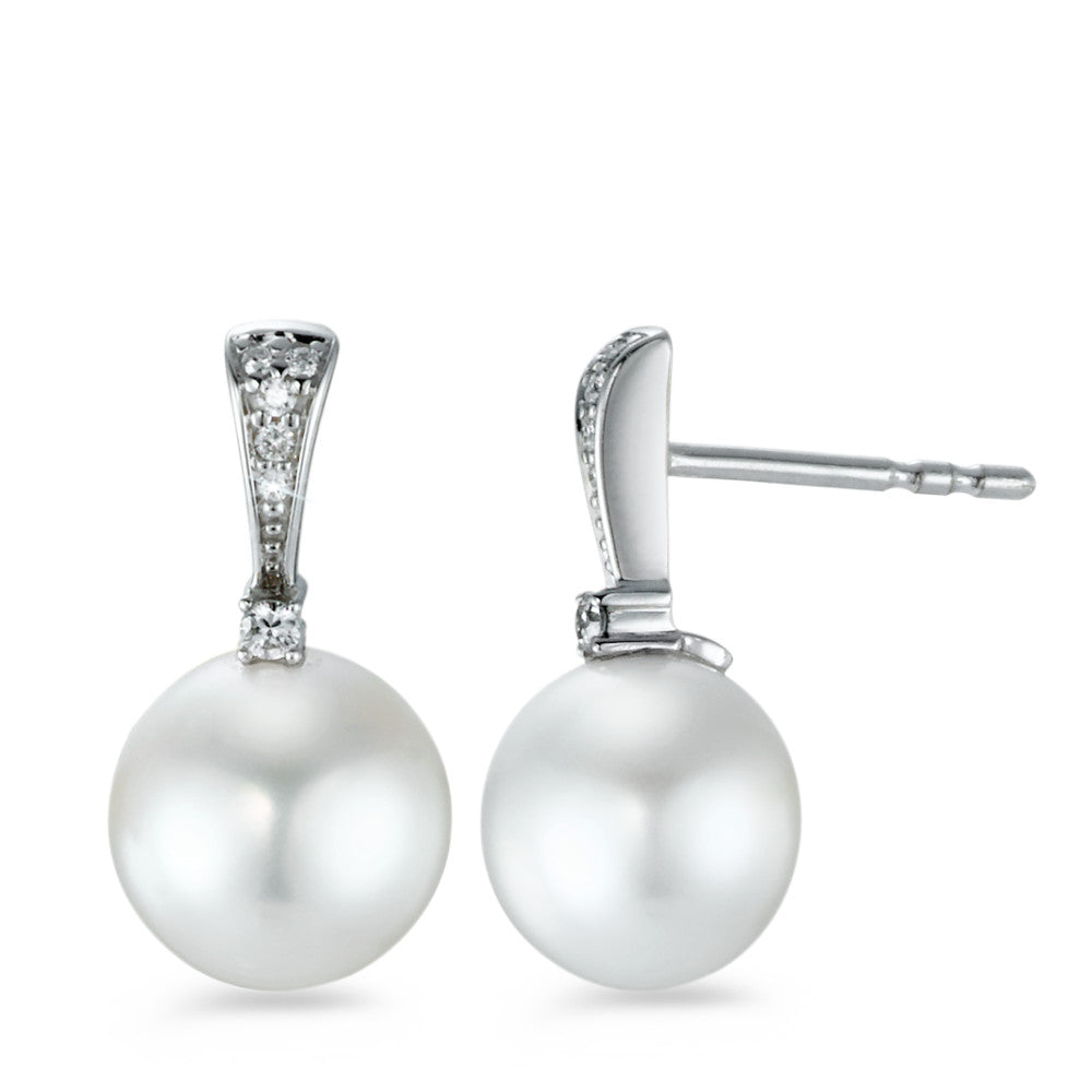 Ohrstecker 750/18 K Weissgold Diamant 0.07 ct, 12 Steine, Brillantschliff, w-si Süsswasserzuchtperlen 8-8.5 mm