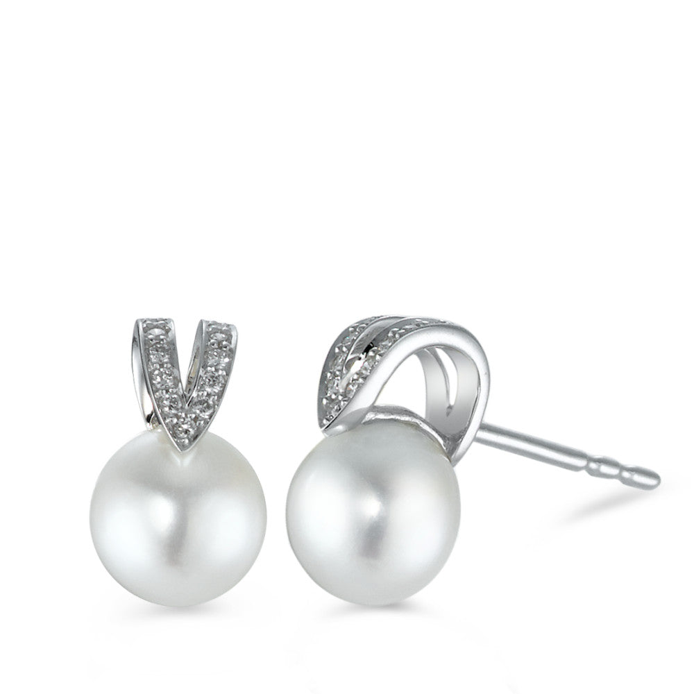 Ohrstecker 750/18 K Weissgold Diamant 0.07 ct, 22 Steine, Brillantschliff, w-si Süsswasserzuchtperlen 6.5-7 mm