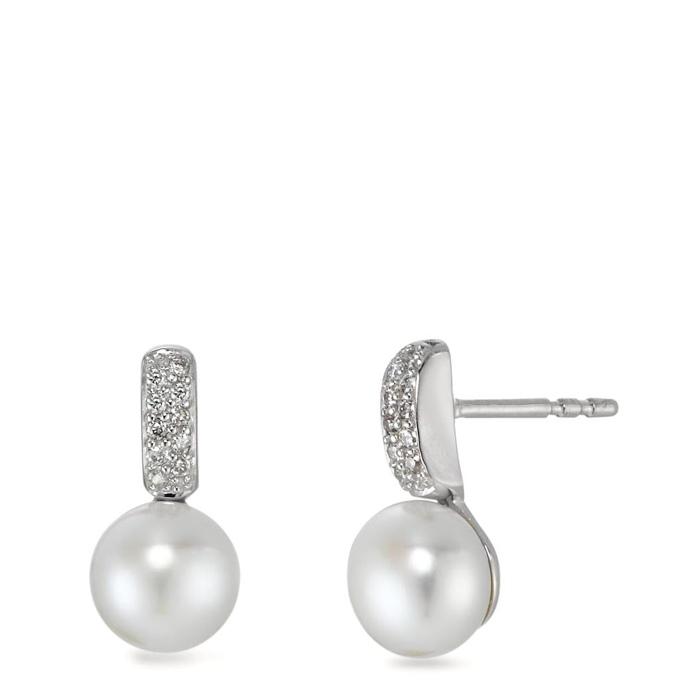 Ohrstecker 750/18 K Weissgold Süsswasserzuchtperle 20 Diamanten, 0.10ct, w-p1 6 mm