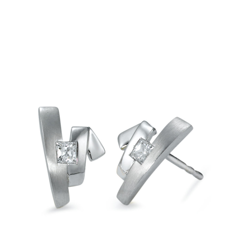 Elegante Damen Ohrstecker aus 750er Weissgold, veredelt mit funkelnden Zirkonia-Steinen. Das moderne Design vereint mattierte und polierte Flächen zu einem stilvollen Accessoire, das jedem Outfit einen edlen Touch verleiht. Perfekt für besondere Anlässe oder den Alltag.