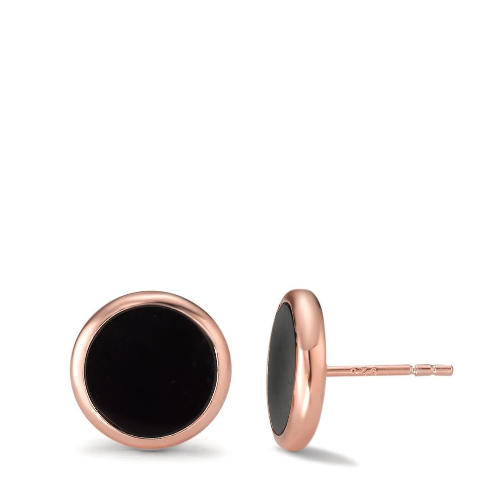 Elegante Damen Ohrstecker aus 925er Silber, veredelt mit einer roségoldfarbenen Beschichtung. Die runden Ohrringe sind mit einem schwarzen Achatstein besetzt und setzen einen stilvollen Akzent zu jedem Outfit. Zeitloses Design für jeden Anlass.