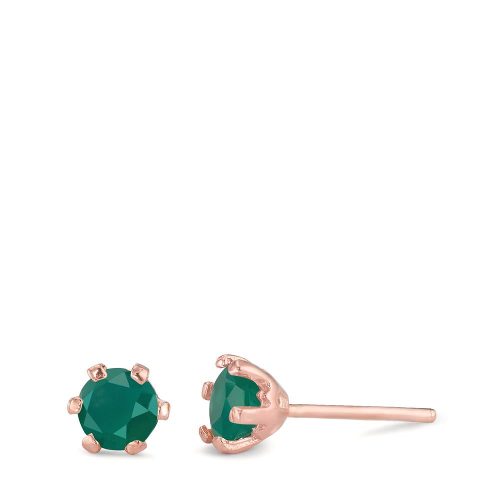 Ohrstecker Silber Achat grün, 2 Steine rosé vergoldet Ø6.5 mm