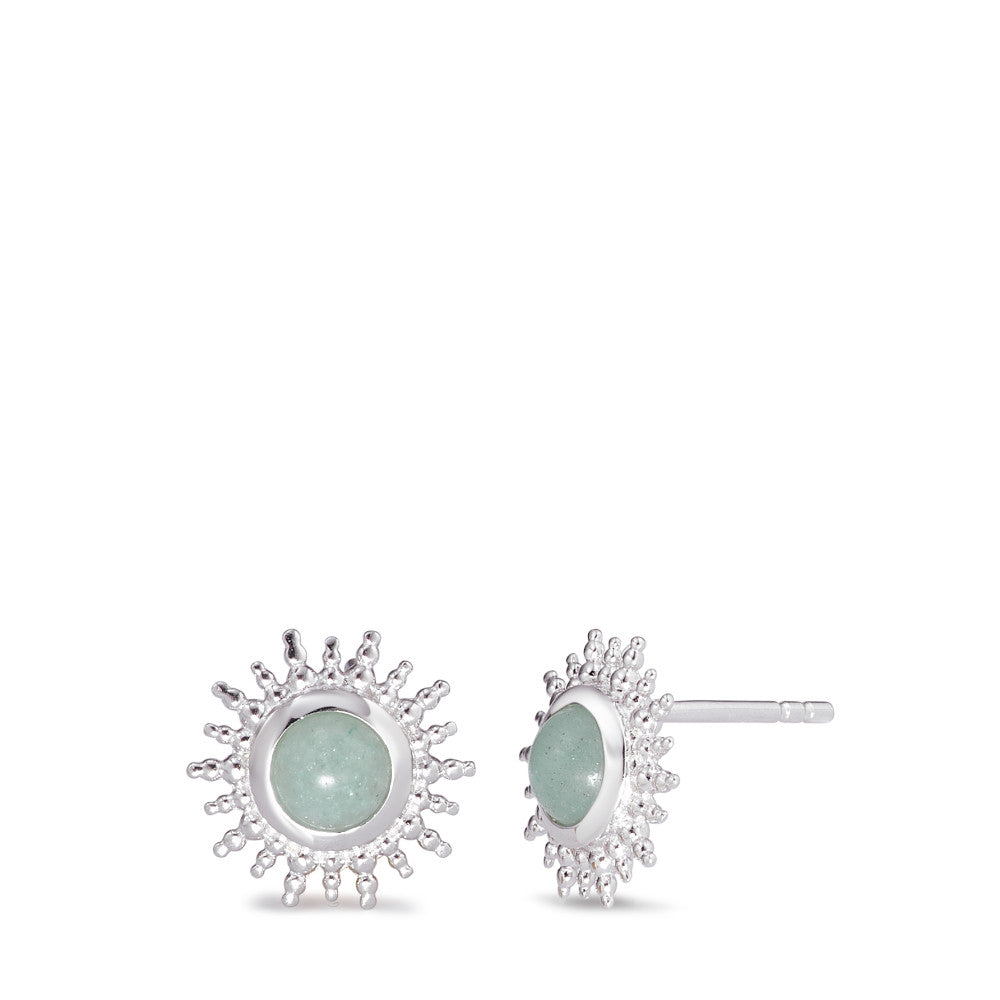 Ohrstecker Silber Aventurin 2 Steine rhodiniert Sonne Ø11.5 mm