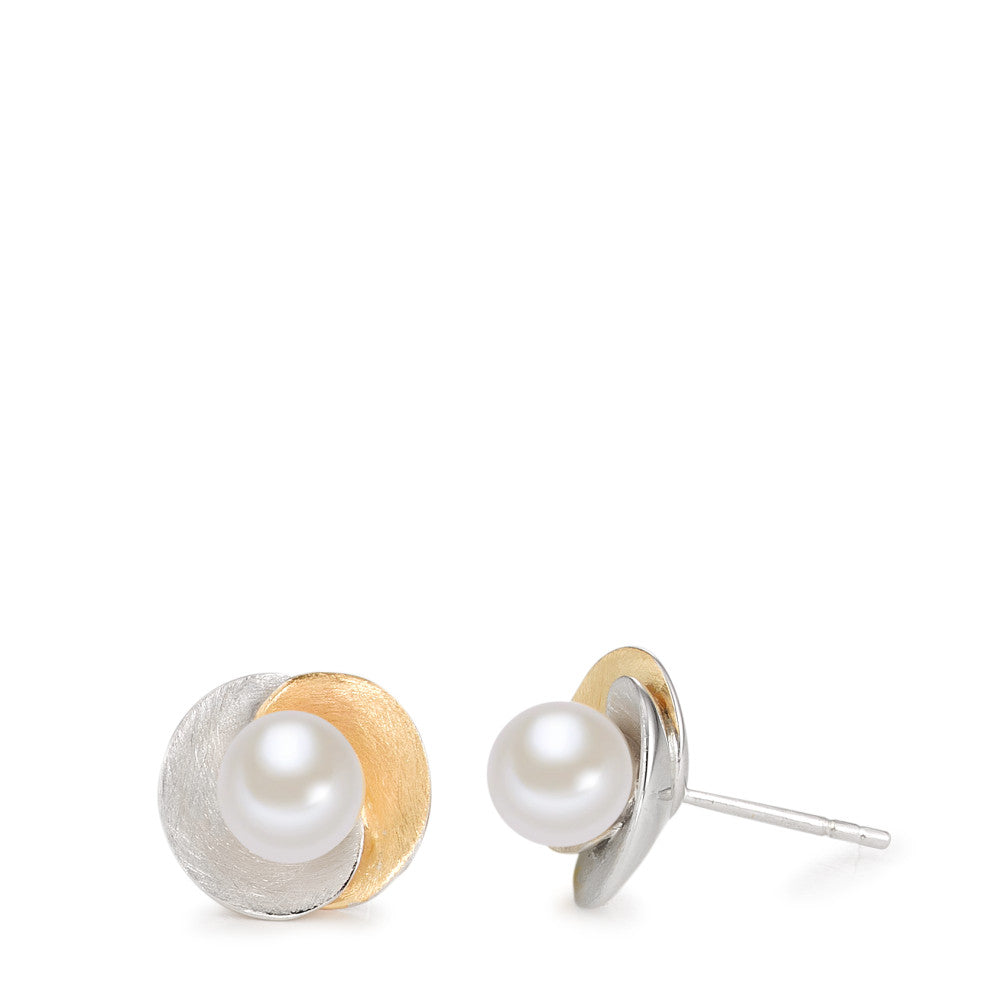 Ohrstecker Silber gelb bicolor Süsswasserzuchtperle weiss, 2 Perlen, 6.5 mm Ø12 mm