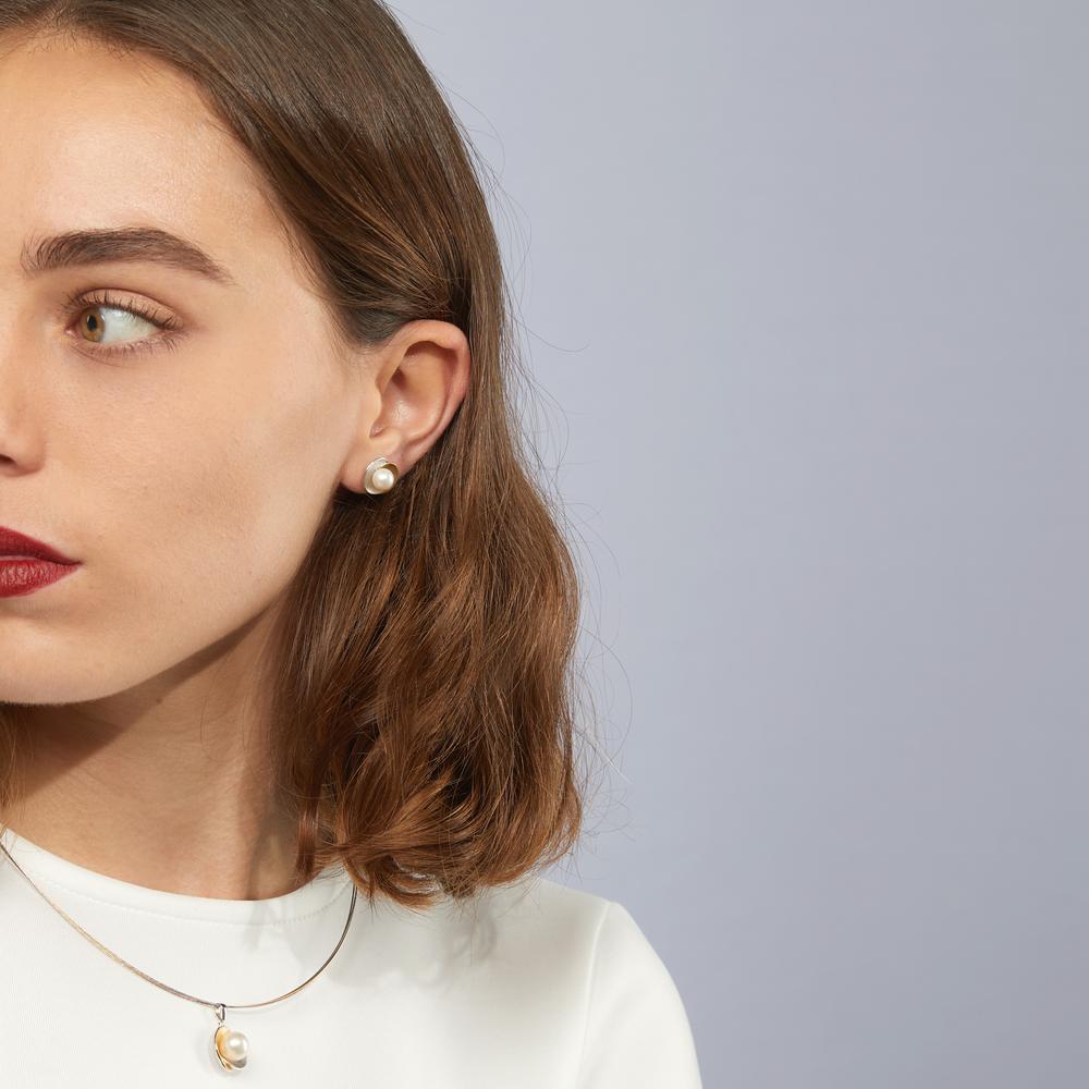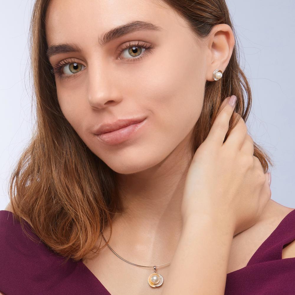Elegante Damen-Ohrstecker aus hochwertigem Silber, liebevoll verziert mit einer strahlenden Süsswasserzuchtperle. Das zweifarbige Design in Silber und Gold verleiht dem Schmuckstück eine besondere Note und lässt sich vielseitig kombinieren – perfekt für jeden Anlass!