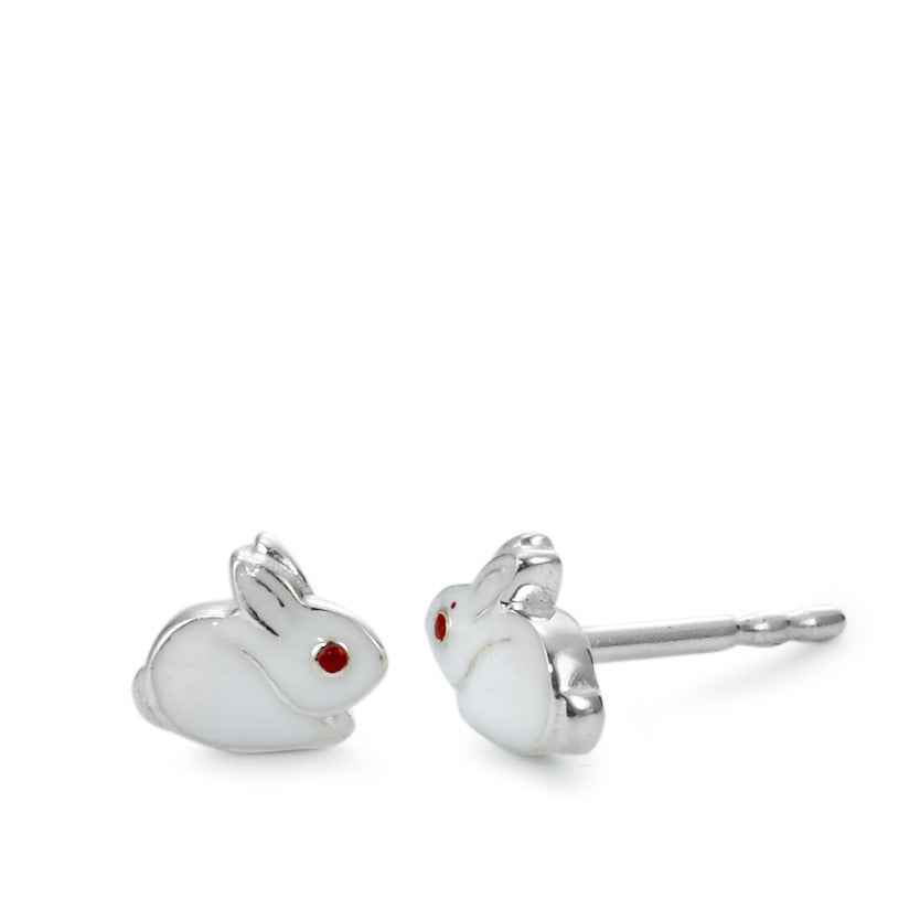 Süsse Mädchen-Ohrstecker aus hochwertigem Silber, gestaltet als kleiner Hase mit weisser Emaille und rotem Auge. Ein liebevoller, verspielter Schmuck, perfekt für den Alltag oder besondere Anlässe. Leicht und angenehm zu tragen – ideal für kleine Tierfreunde.