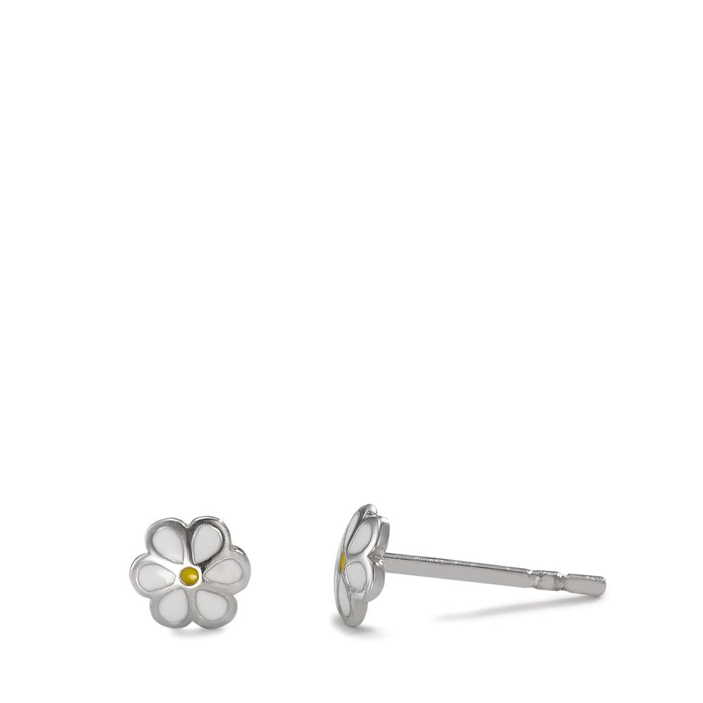 Zauberhafte Mädchen-Ohrstecker aus hochwertigem Silber in Form einer zarten Blume. Die weissen Blütenblätter mit gelbem Zentrum bringen Frische und Stil ins Ohr. Perfektes Accessoire für kleine Mädchen, das vielseitig zu jedem Outfit passt. Leicht und angenehm zu tragen.