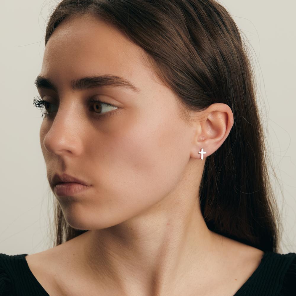 Elegante Damen Ohrstecker aus hochwertigem Silber in Form eines minimalistischen Kreuzes. Dezentes Design für jeden Tag, das Stil und Symbolik perfekt vereint. Leicht zu tragen und ideal als Geschenk oder für den eigenen Schmuckschatz.
