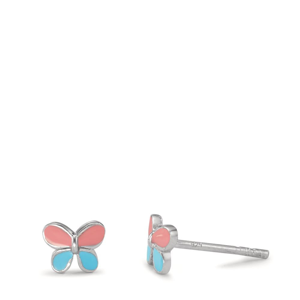 Diese süssen Mädchen-Ohrstecker aus hochwertigem 925er Silber zeigen zarte Schmetterlinge in fröhlichen Rosa- und Blautönen. Leicht und angenehm zu tragen, sind sie das perfekte Accessoire für jeden Tag und ein bezauberndes Geschenk für kleine Prinzessinnen.