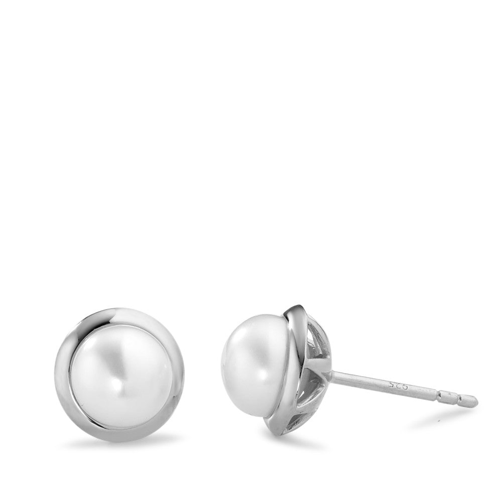 Ohrstecker Silber rhodiniert Süsswasserzuchtperle weiss, 2 Perlen, 7 mm Ø9 mm