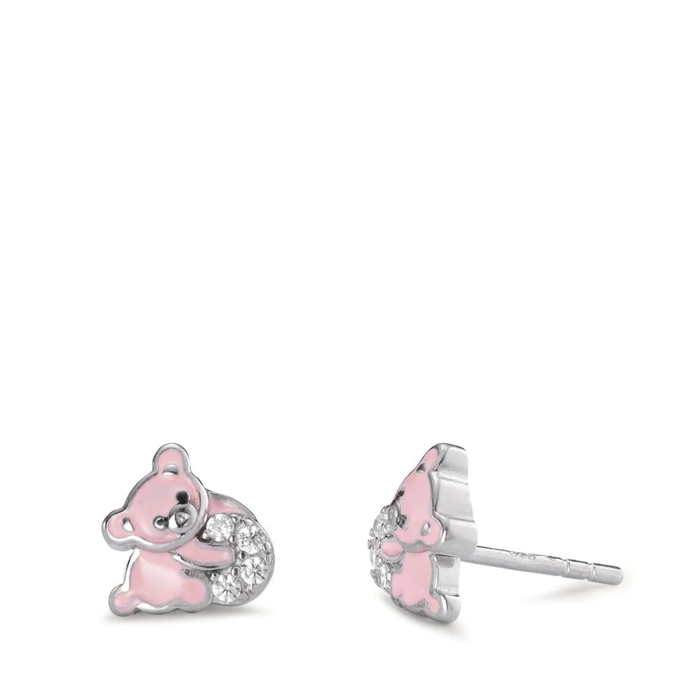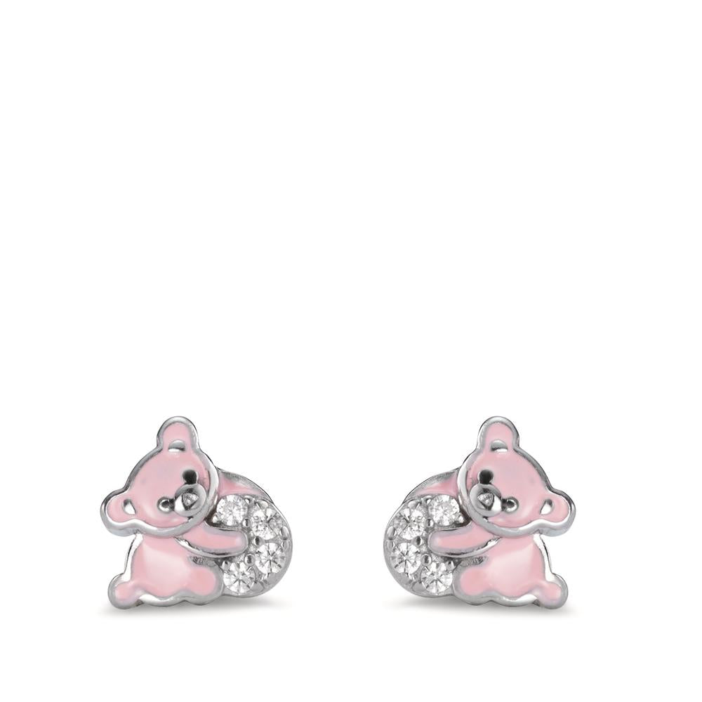 Zauberhafte Mädchen Ohrstecker aus hochwertigem Silber mit niedlichem Bär-Motiv. Liebevoll mit rosa Emaille verziert und funkelnden Zirkonia-Steinchen besetzt, sind sie ein tolles Accessoire für kleine Tierliebhaberinnen. Perfekt für jeden Tag und spezielle Anlässe!