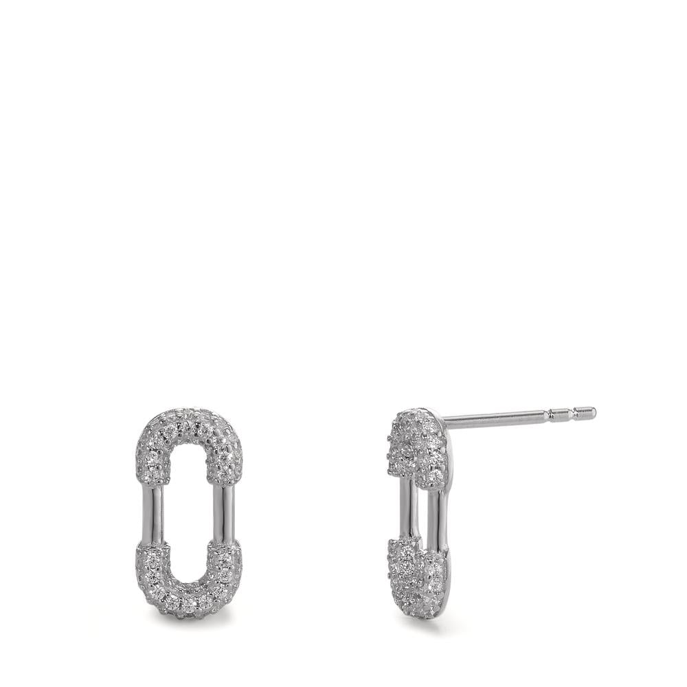 Elegante Damen Ohrstecker aus hochwertigem Silber, verziert mit funkelnden Zirkonia-Steinen. Das moderne Design in Form eines stilisierten Ovals verleiht jedem Outfit einen dezenten, aber glänzenden Akzent. Ideal für jeden Anlass und ein perfektes Geschenk.