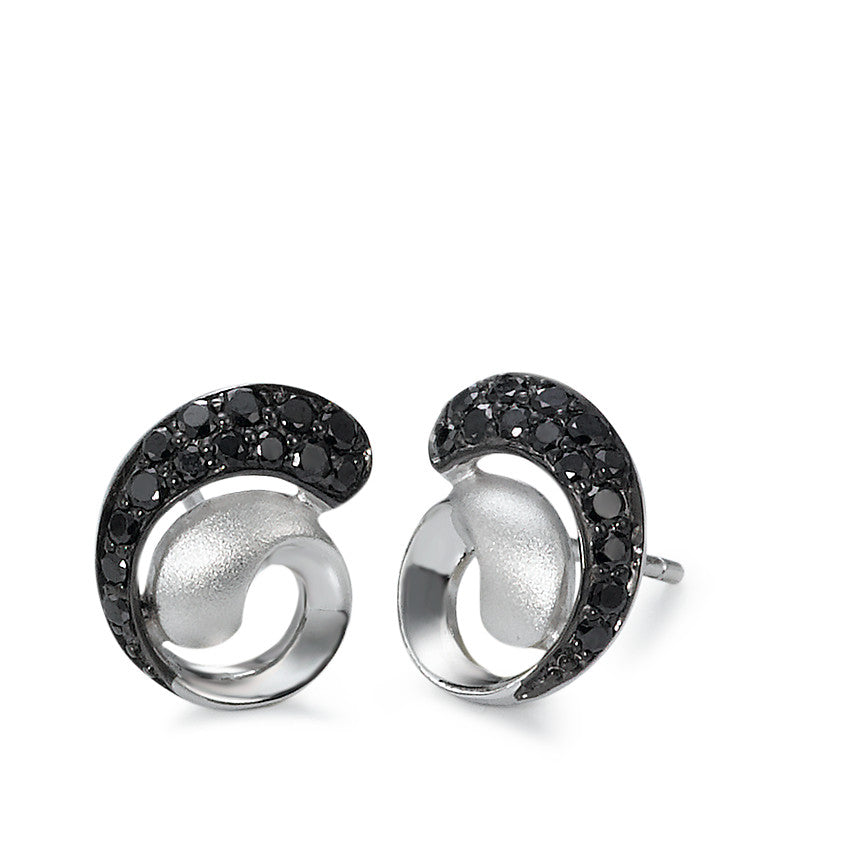 Ohrstecker Silber Zirkonia schwarz, 28 Steine rhodiniert